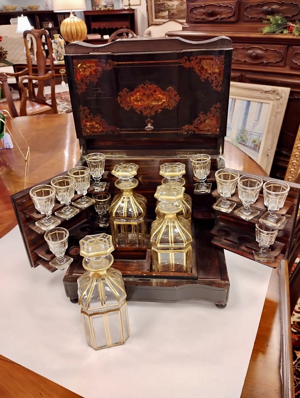 Description: 893901 - Liquor Cabinet Tantalus with 4 Decanters 12x9x10