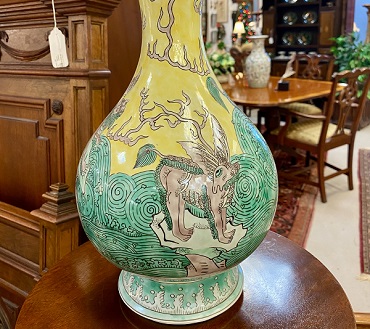 Description: 895203 - Yellow/Green Chinese Vase 15”