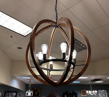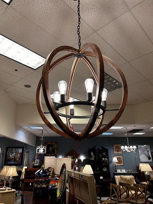 Description: 422438 - Wood/Iron Sphere Chandelier 29x33