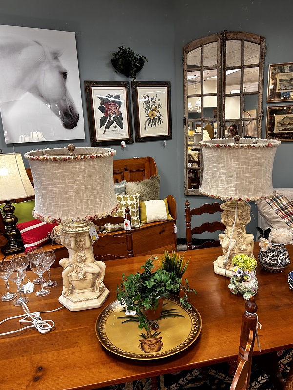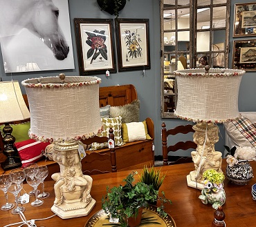 Description: 679213 - Pair of Ceramic Cherub Lamps 28x19.5