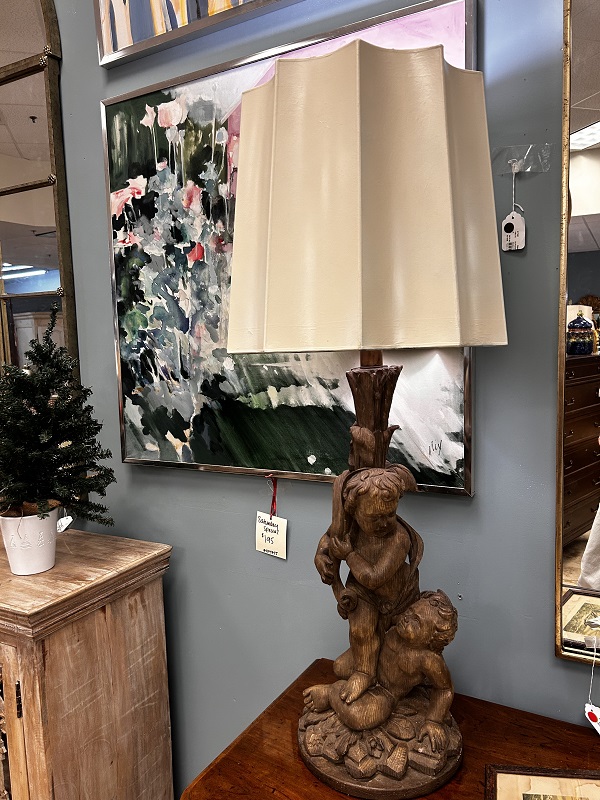 Description: 7018179 - Faux Wood Cherub Lamp 43”