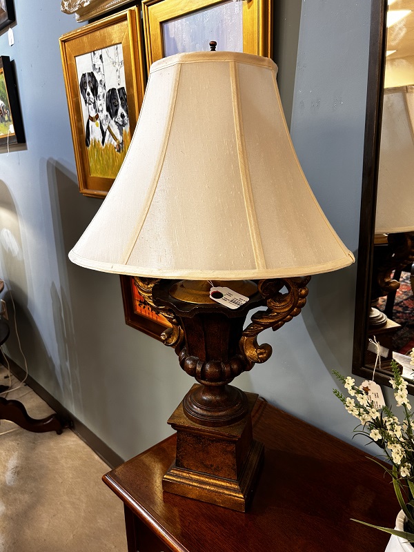 Description: 742813 - Wood Lamp with Gold Handles 32”