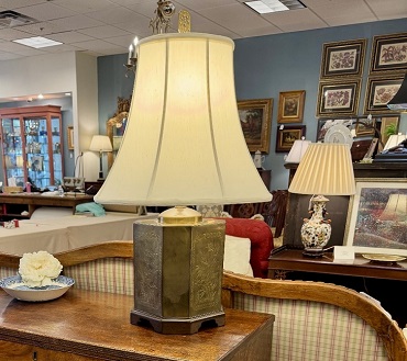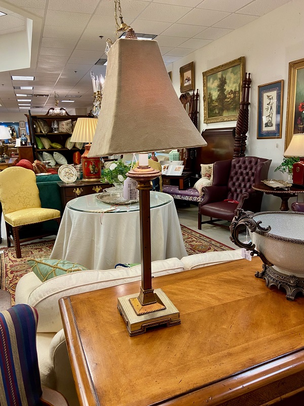 Description: 886601 – Brass Tea Caddy Lamp 27”H