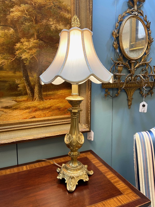 Description: 846713 – Pair of Ornate Brass Lamps 27”H