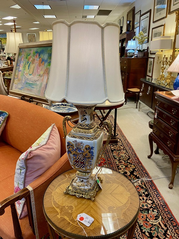 Description: 448848 – Glass Lamp with Black Shade 20’H
