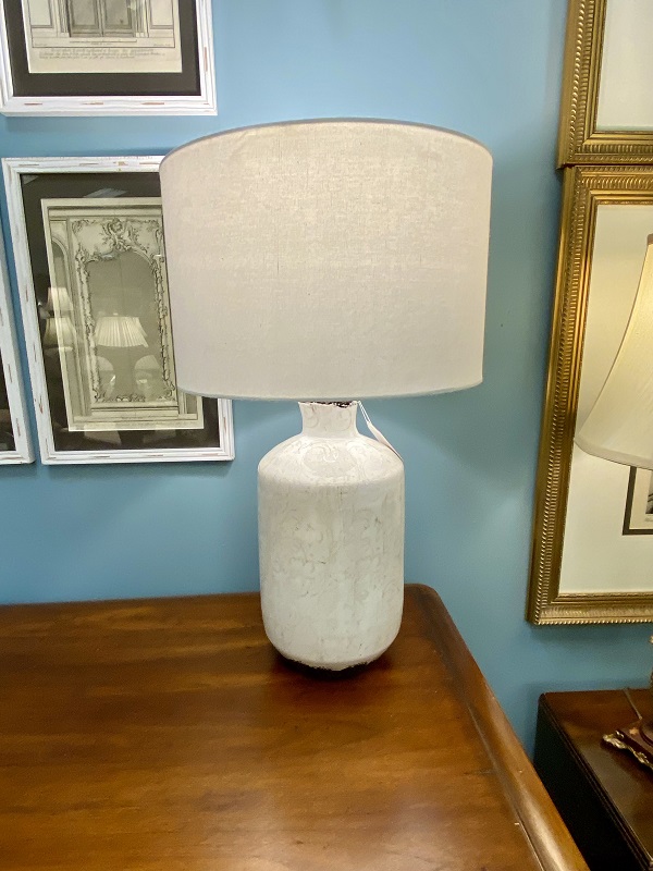 Description: 448848 - Glass Lamp with White Shade 20”