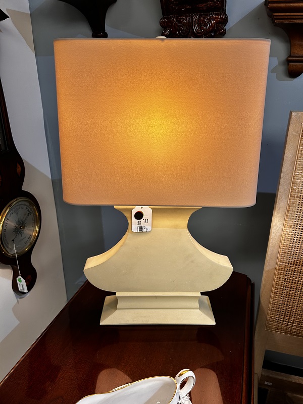 Description: 886725 - White Wood Lamp with Beige Shade 24”