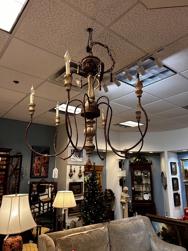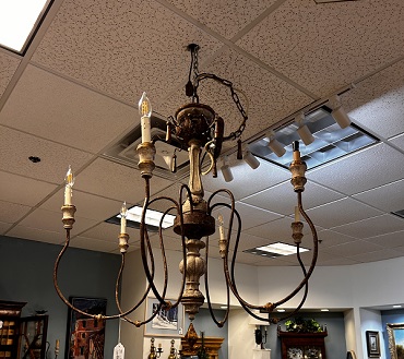 Description: 894917 - Gilt Wood/Metal 6 Arm Chandelier 36x32