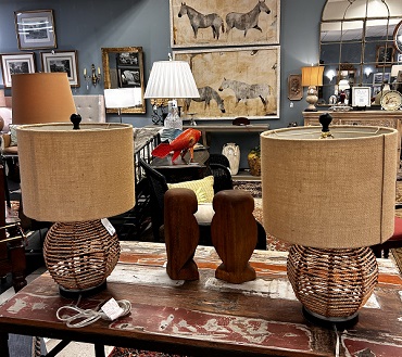 Description: 433303 - Pair of Lamps with Burlap Shades 22”
