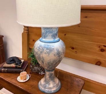 Description: 6239111 – Blue and Cream Crackle Lamp 32”H
