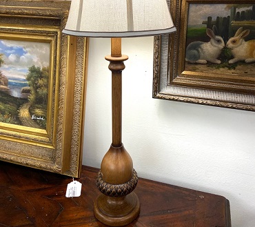 Description: 852506 – Pair of Wood Acorn Lamps 29”H