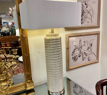 Description: 876301 – Pair of Cream Lamps w/Silver Base 37”H