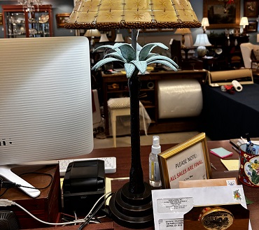 Description: 884401 - Palm Tree Lamp with Beaded Shade 29”