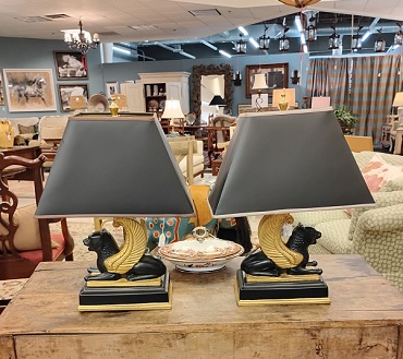 Description: 897001 - Pair of Black/Gold Winged Lion Lamps 22