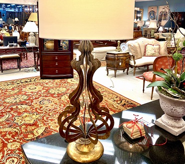 Description: 899408 - Pair of Gold Open Scrollwork Lamps 32"H