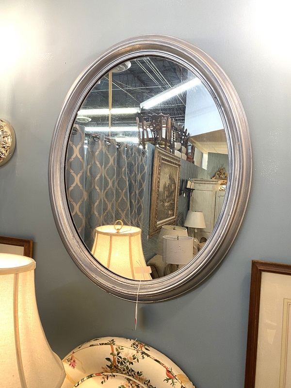Description: 854041 - Oval Blue/Silver Wood Mirror 32x26