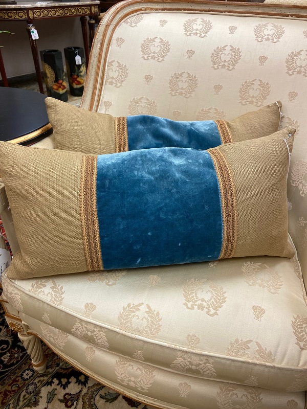 Description: 308130 – Pair of Custom Blue Lumbar Pillows 22x11