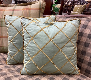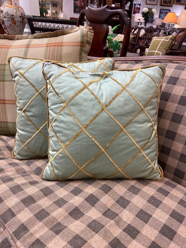 Description: 845901 – Pair of Green Silk Pillows 16x16