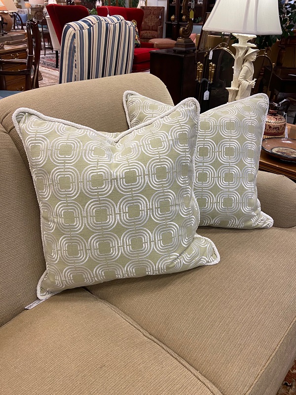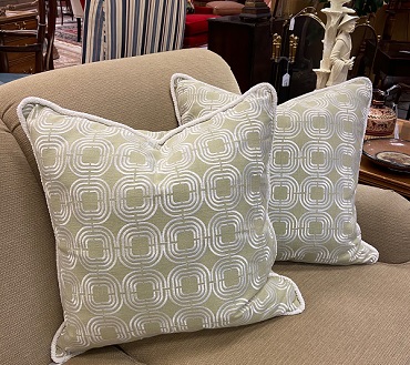 Description: 859308 – Pair of Green/White Pillows 20x20