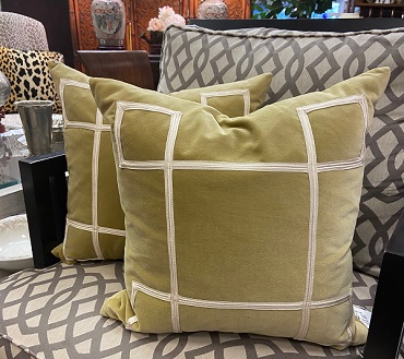 Description: 749024 – Pair of Green Velvet Greek Key Pillows 18x18