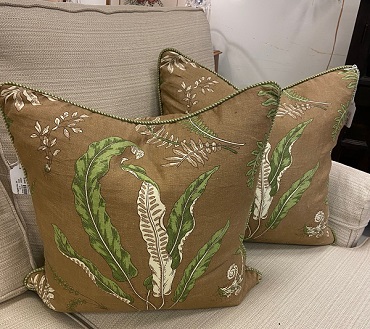 Description: 859331 – Pair of Brown/Green Floral Pillows 22x22