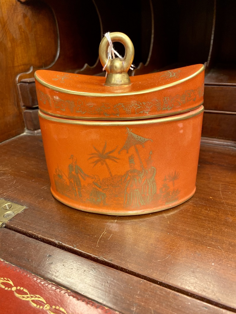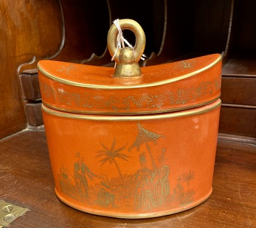 Description: 894619 - Orange/White Lidded Crock 16x9