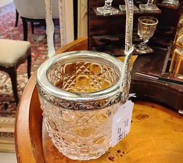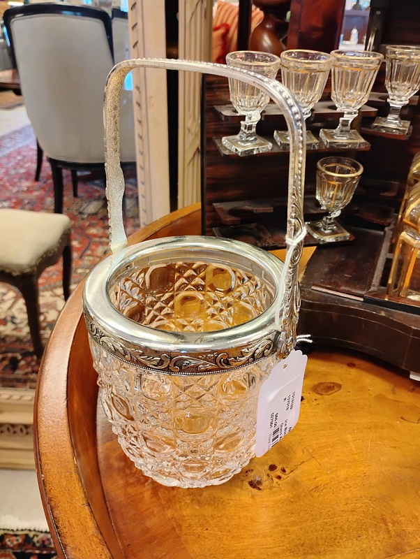 Description: 7018189 - Glass and Silverplate Ice Bucket, 5x6,