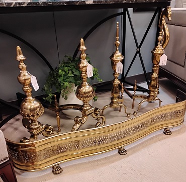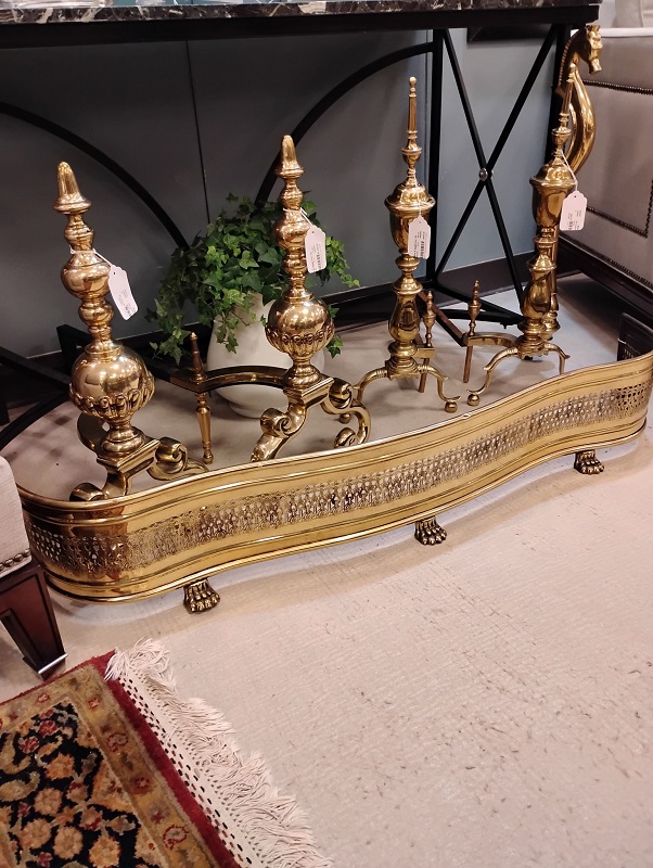Description: 886205.7 - Pair of Brass Andirons (2 Pairs Available) 26x10