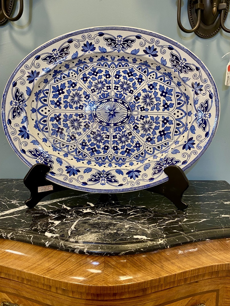 Description: 898660 - Blue/White Ironstone Floral Platter 20x15