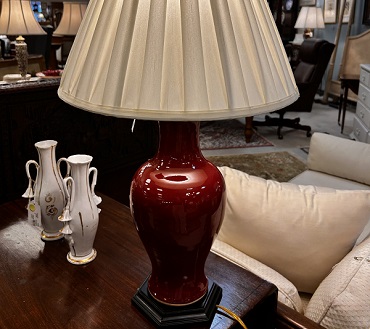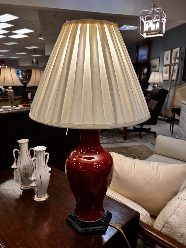 Description: 104556 - Burgundy Lamp with Pleated Shade