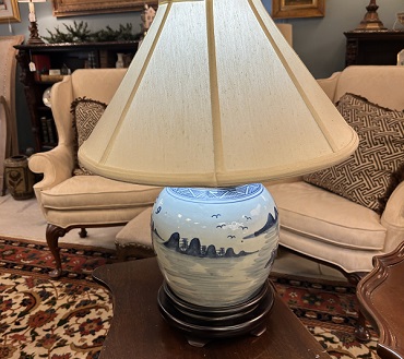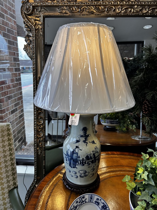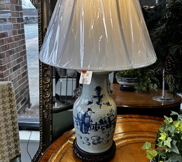 Description: 831074 - Blue/White Lamp with Finial 21”