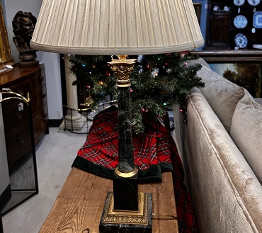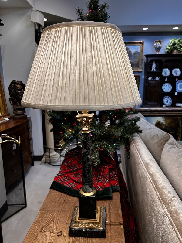 Description: 742812 - Green Marble Lamp with Pleated Shade 30”