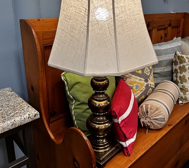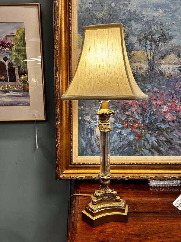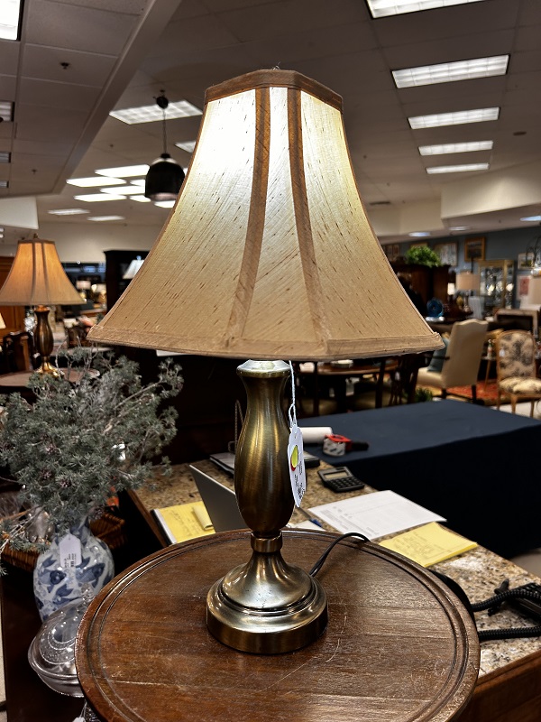Description: 877411 - Brass Lamp with Linen Shade 28”