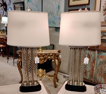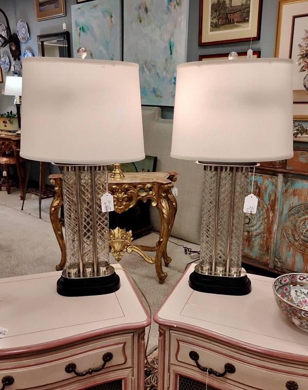 Description: 742811 – Pair of Silver Lamps w/Tear Drops 31”H