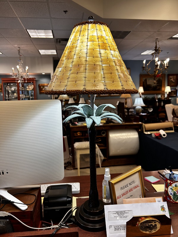 Description: 884401 - Palm Tree Lamp with Beaded Shade 29”