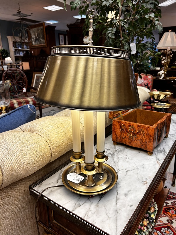 Description: 891402 - Bouillotte Lamp with Brass Tole Shade 25”