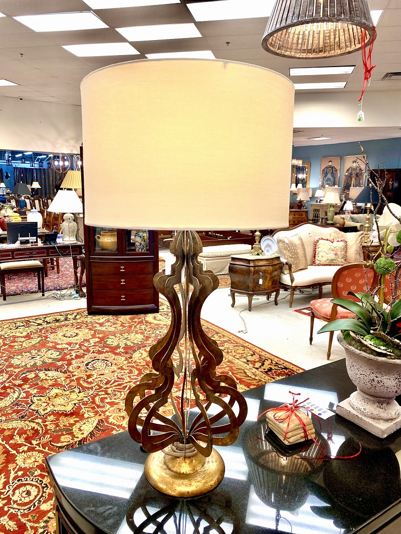 Description: 899408 - Pair of Gold Open Scrollwork Lamps 32"H