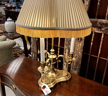 Description: 881346 - 3 Lighted Brass Bouillote Lamp with Pleated Shade 24.5”