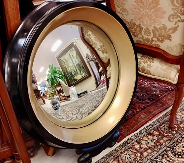 Description: 762588 - Black/Gold Round Convex Mirror 28”