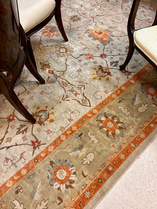 Description: 505240 – Peach/Green Floral Oushak Rug 10x14